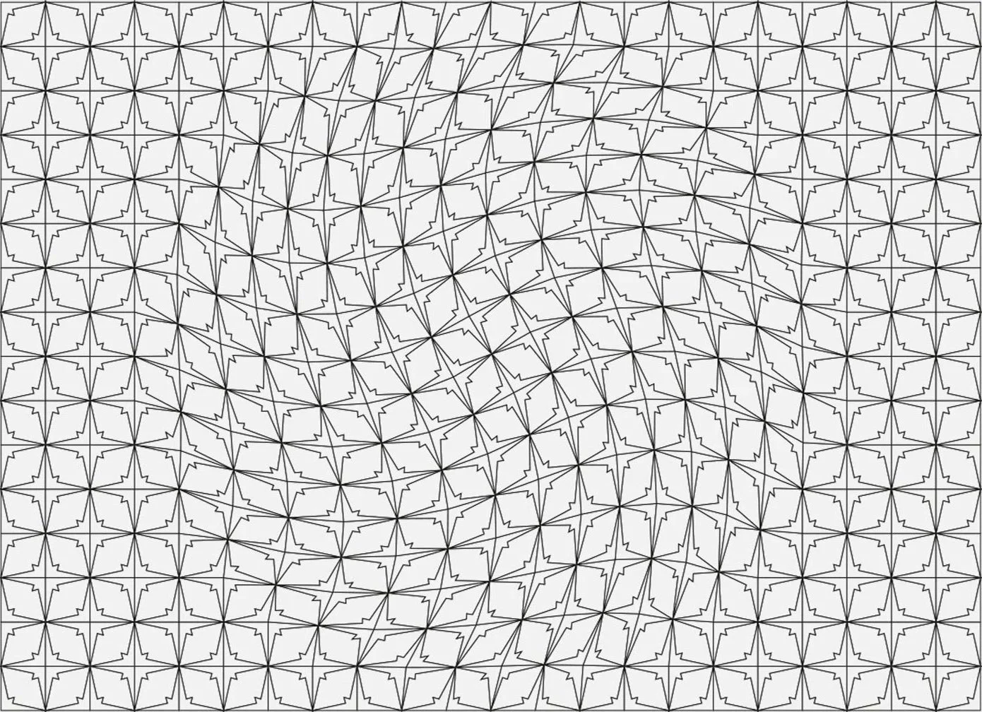 A compass geometry is embedded within the pattern. It bends and redirects itself toward the center of the installation.